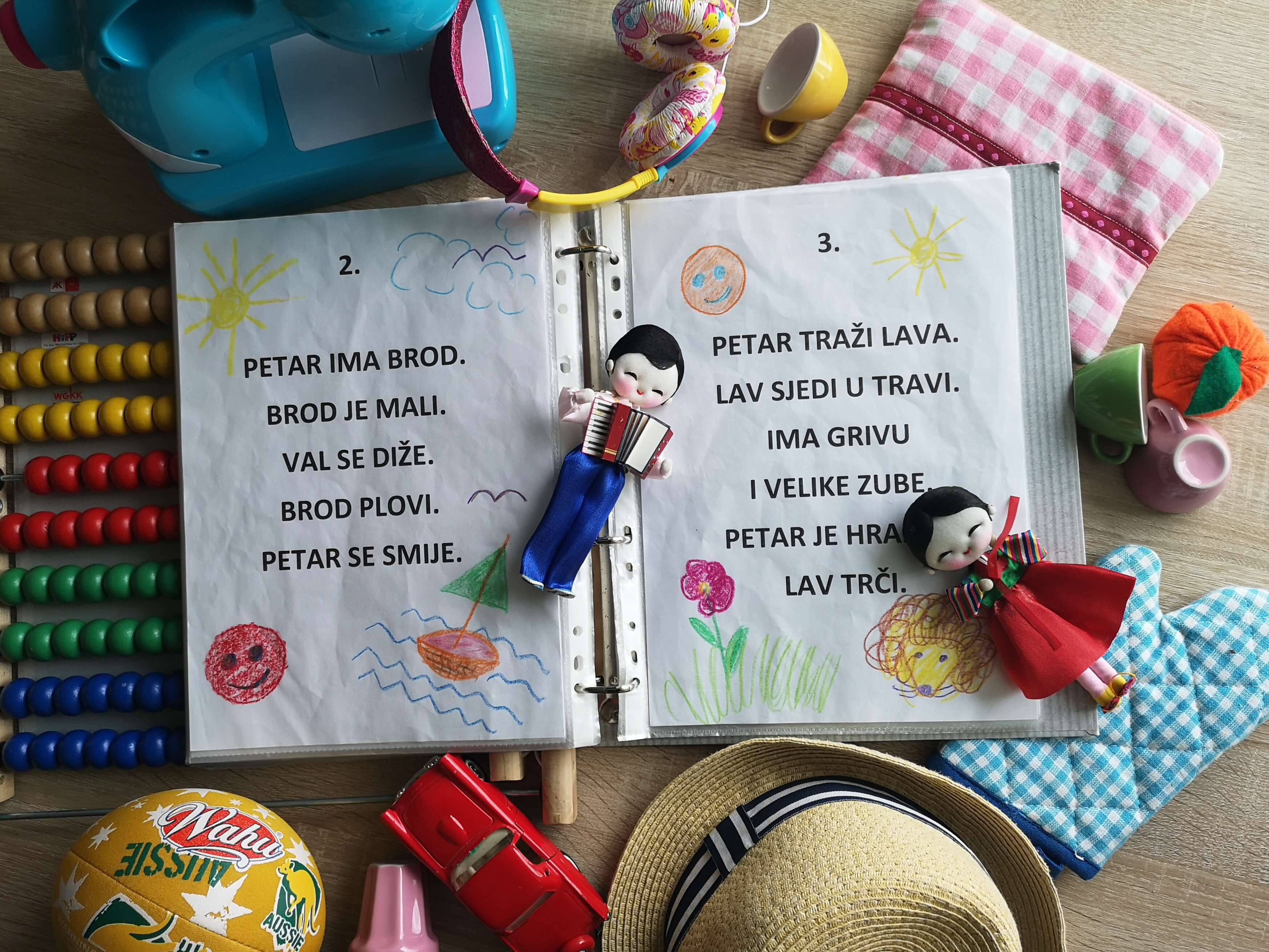 The problem is, children don’t understand combining phonemes to syllables and syllables to the whole words. This is why singing while pronouncing the syllables might help. What they can remember easily are the sounds and pictures because they are used to learning by observing, hearing, repeating and reproducing. At the very beginning they will probably observe the word “mama” as a merely visual sensation and after having pronounced it several times they will memorize it correctly, without really understanding how the mechanism works. But that’s a start!