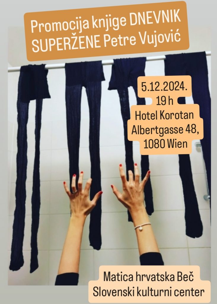 Prezentacija knjige: Dnevnik superženeU svojoj prvoj knjizi se autorica Petra Vujović duhovito, ironično i kritično obračunava sa svakodnevicom jedne osvještene mlade žene, majke tinejdžera i profesorice njemačkog jezika. Ova zbirka priča skenira sve točke očekivanja koje jedna suvremena žena (ne) mora ispuniti, a kako bi se lakše nosila s mrskom stvarnošću.